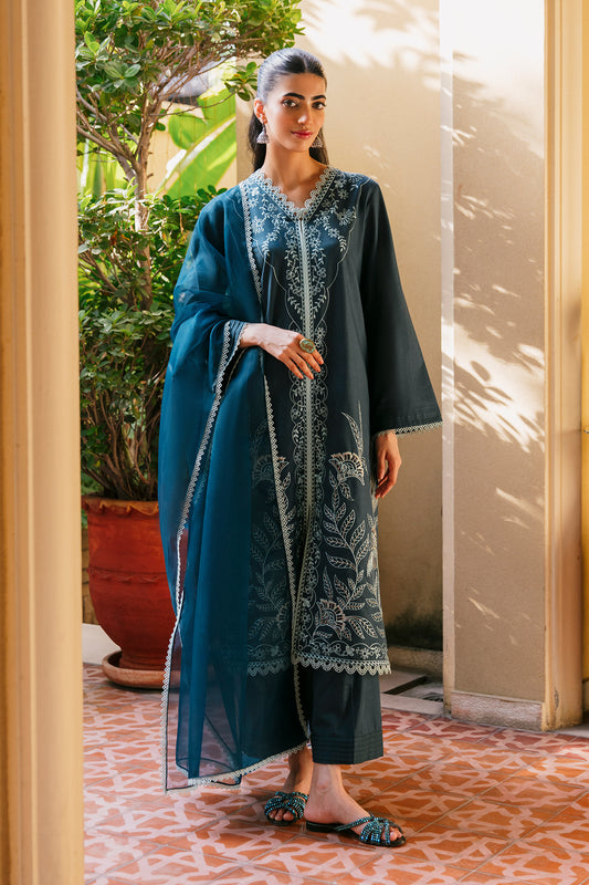 An ode to understated elegance — this deep teal three-piece ensemble is crafted on a...