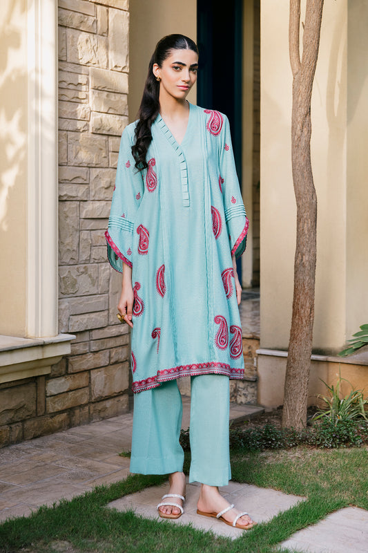 A refreshing ode to timeless tradition — this cool aqua ensemble is adorned with delicately...